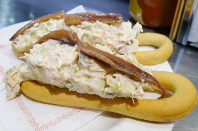 En Murcia podemos encontrar la misma receta pero sustituyendo las anchoas por boquerones, en cuyo caso recibe el nombre de “marinero”. También la encontraremos elaborada sólo con las rosquillas y la ensaladilla, conocida entonces como “bicicleta”.